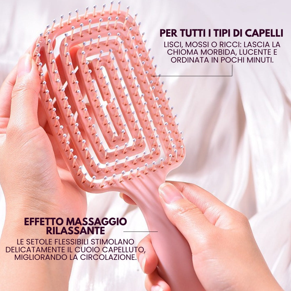 La spazzola che districa, massaggia e asciuga più in fretta — senza stress per i tuoi capelli.